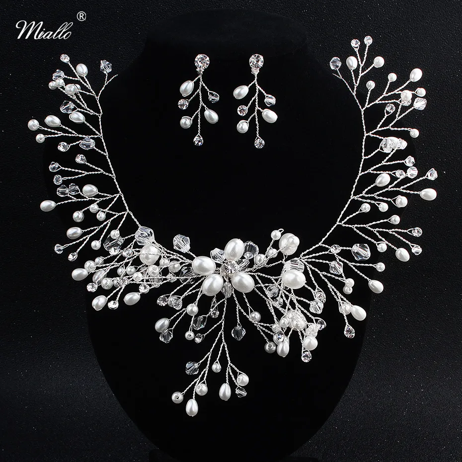 Miallo Handmade Ivory White Pearls Necklace And Earrings Sets Bridal Jewelry Pearl Sets