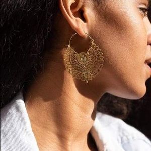 Dedicated To Those Who Chase The Horizon To Bask In Her Golden Glow Model Is Wearing The Sunseeker Earring Boho Jewellry Festival Jewelry Burning Man Jewelry Daya Jewelry