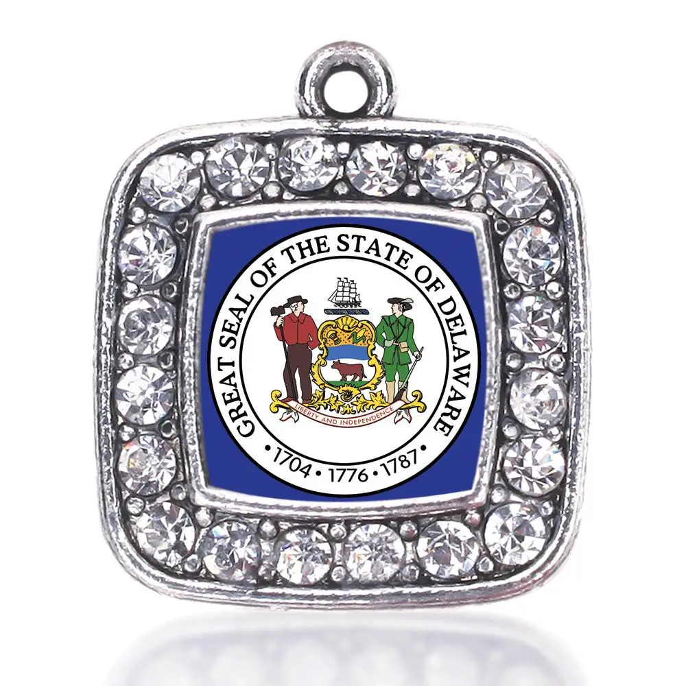 Delaware Flag Square Charm Antique Silver Plated Crystal Jewelry Delaware Jewelry Stores