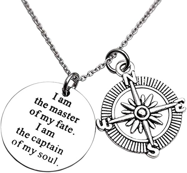 I Am The Master Of My Fate I Am The Captain Of My Soul Compass Necklace Jewelry Invictus Inspirational Quote Graduation Gift Amazon Co Uk Jewellery Invictus Jewelry