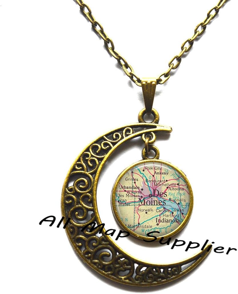 Amazon Com Charming Moon Des Moines Iowa Map Pendant Des Moines Jewelry Des Moines Iowa www.amazon.com