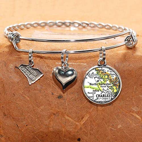Amazon Com South Carolina Map Bracelet North Charleston Sc Usa States Cities Towns Vintage Map Jewelry And Gifts Handmade Jewelry Stores Charleston South Carolina
