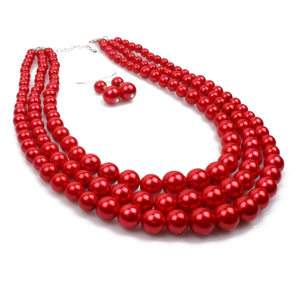 Kosmos Li 3 Layer Red Color Imitate Pearl Bead Strand Necklace Schwa Jewelry www.amazon.co.uk