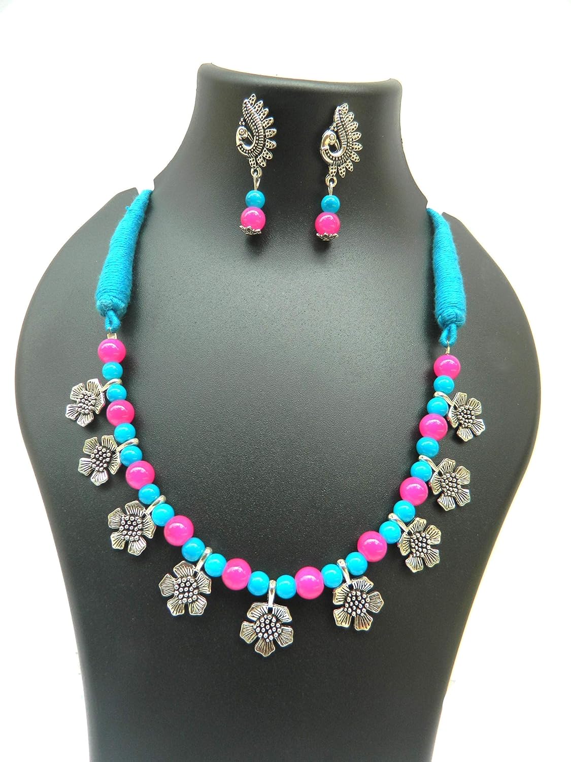 The Hand Krities White And Sky Blue Floret Necklace Jewellery Set Sky Blue Jewelry