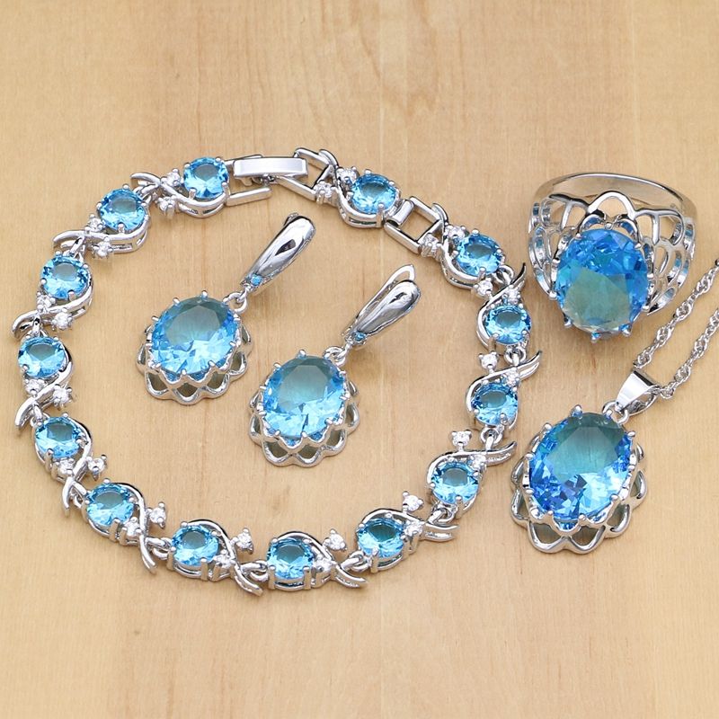 Fashion Classic Sky Blue Heart Jewelry Silver Color Wedding Gift Sky Blue Jewelry